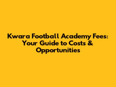 Kwara Football Academy Fees: Your Guide To Costs & Opportunities