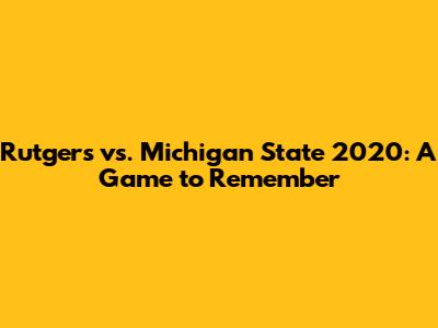 Rutgers Vs. Michigan State 2020: A Game To Remember