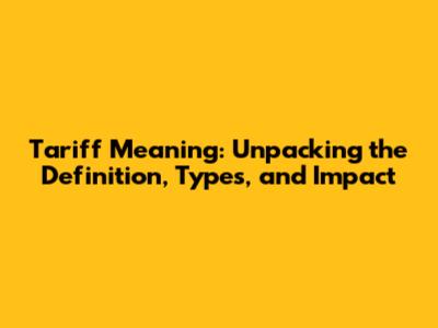 Tariff Meaning: Definition, Types, And Impact