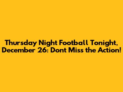 Hey guys! Are you ready for some football? Tonight, December 26th, is shaping up to be a fantastic night for Thursday Night Football. We're diving deep into what makes this game a must-watch, giving you the lowdown on the teams, key players, and what's at stake. Get your snacks ready, settle into your favorite spot on the couch, and let's get into it!